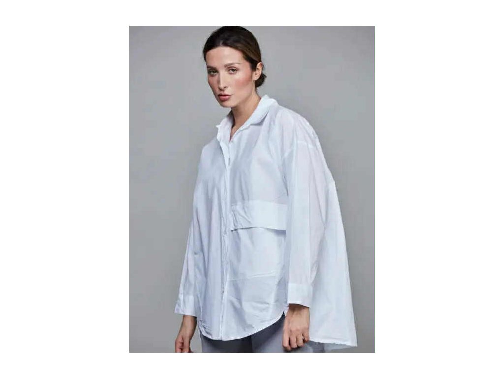 Bílá košile s výraznou kapsou z bavlněného, jemně tkaného popelínu