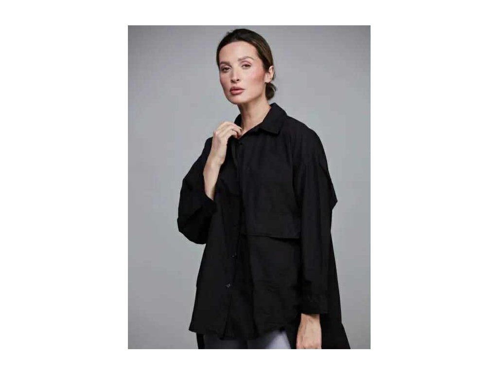 Černá košile s výraznou kapsou z bavlněného, jemně tkaného popelínu