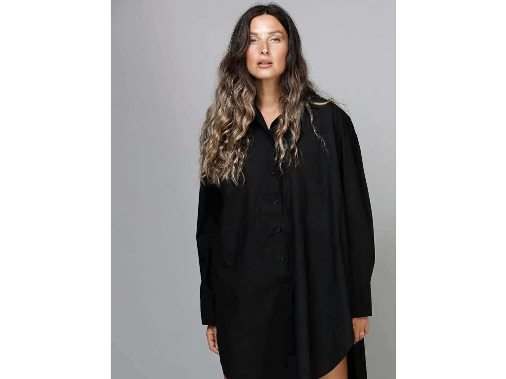 Dlouhá černá košile z bavlněného, jemně tkaného popelínu