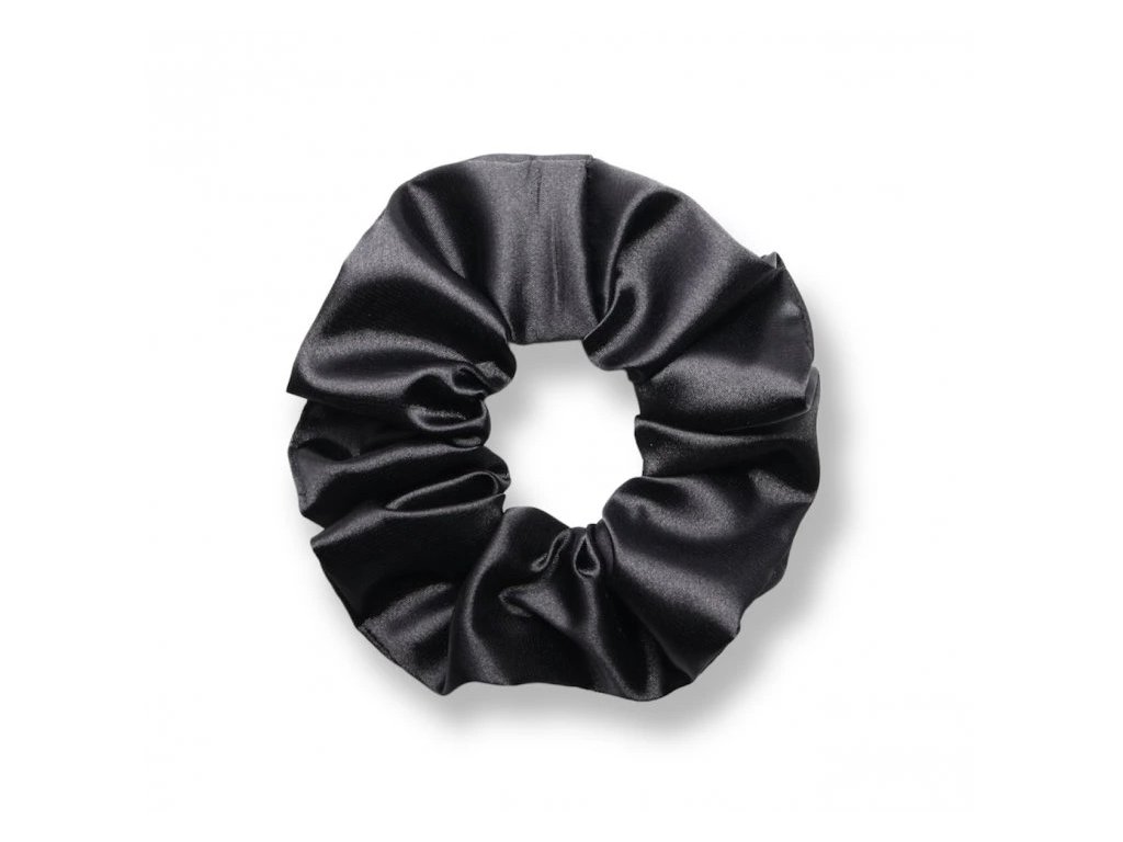 MURU - Saténová scrunchie gumička - Černá lesklá - široká