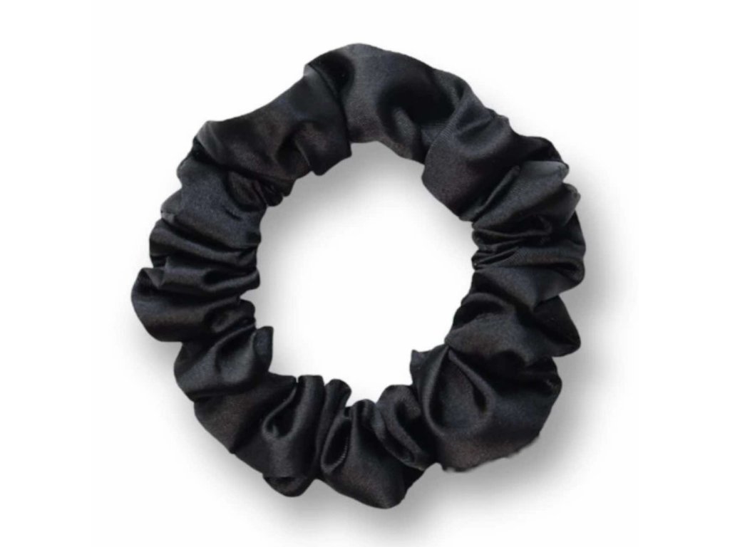 MURU - Saténová scrunchie gumička - Černá lesklá - úzká
